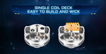 ميسون RTA هو جهاز استنشاق بخاري بملف واحد لتدفق هواء محدود، بقوة تتراوح بين 20 و50 واط. مانع للتسرب مع إمكانية تعديل تدفق الهواء العلوي. يتدفق الهواء على شكل قرص العسل مباشرةً إلى الملف. سعة سائل ميسون RTA الإلكترونية 5 مل/6 مل، وهو متوافق تمامًا مع هادرون لايت وهادرون ميني. داخل حجرة الاستنشاق، ستجد سطحًا بدون دعامات مصممًا لتكوينات الملف الواحد، مما ينتج عنه تدفق هواء محدود، ويعمل بقوة تتراوح بين 20 و50 واط. يضمن نظام تدفق الهواء العلوي القابل للتعديل إنتاج نكهة نقية، بينما يساعد تصميمه المقاوم للتسرب على منع أي فوضى غير مرغوب فيها. يتميز هذا الجهاز المدمج بحجم حجرة أصغر لإنتاج بخار أسرع، وفتحات هواء على شكل قرص العسل لمزيد من التنوع.