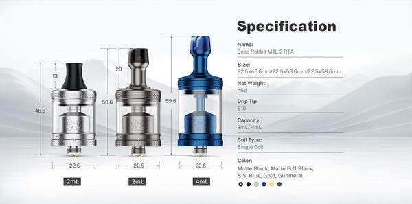 هيلفيب ديد رابيت MTL 2 RTA هو خزان هيلفيب ديد رابيت MTL RTA مُحسّن، مع سطح مُحسّن بدون دعامات للملف الواحد، وسعة قصوى لسائل التبخير 4 مل، ورأس تقطير 510 قابل للاستبدال بتصميم ولون جديدين، أكثر تناسقًا وجمالًا. لتجنب التسريب، يُثبّت قفل ربع لفة أسفل الخزان لسهولة فكه وإغلاقه بإحكام. كما يُمكن ضبط تدفق الهواء عن طريق استبدال دبوس تدفق الهواء (0.8، 1.0، 1.2، 1.5، 1.8، 2.0 مم).