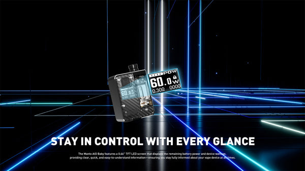 The Manto Al0 Baby features a 0.66inch TFT LED screen that displays the remaining battery power and device wattage,providing clear, quick, and easy to understand information-ensuring you stay fully informed about your vape device at all times.