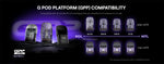 5. توافق منصة G Pod (GPP): متوافق مع جميع خراطيش CALIBURN G3 متعددة الاستخدامات من القاعدة الحرة إلى ملح النيكوتين